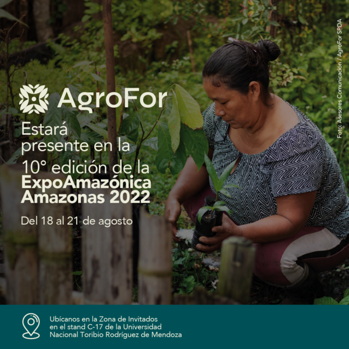 En el marco de la ExpoAmazónica 2022, que se desarrolla del 18 al 21 de agosto en la ciudad de Chachapoyas, especialistas de AgroFor participarán en paneles explicando los últimos resultados del proyecto y las próximas acciones a implementar. Además, contará con un stand durante todo el evento para compartir información sobre la agroforestería en la Amazonía y las brechas y oportunidades de las CUSAF.